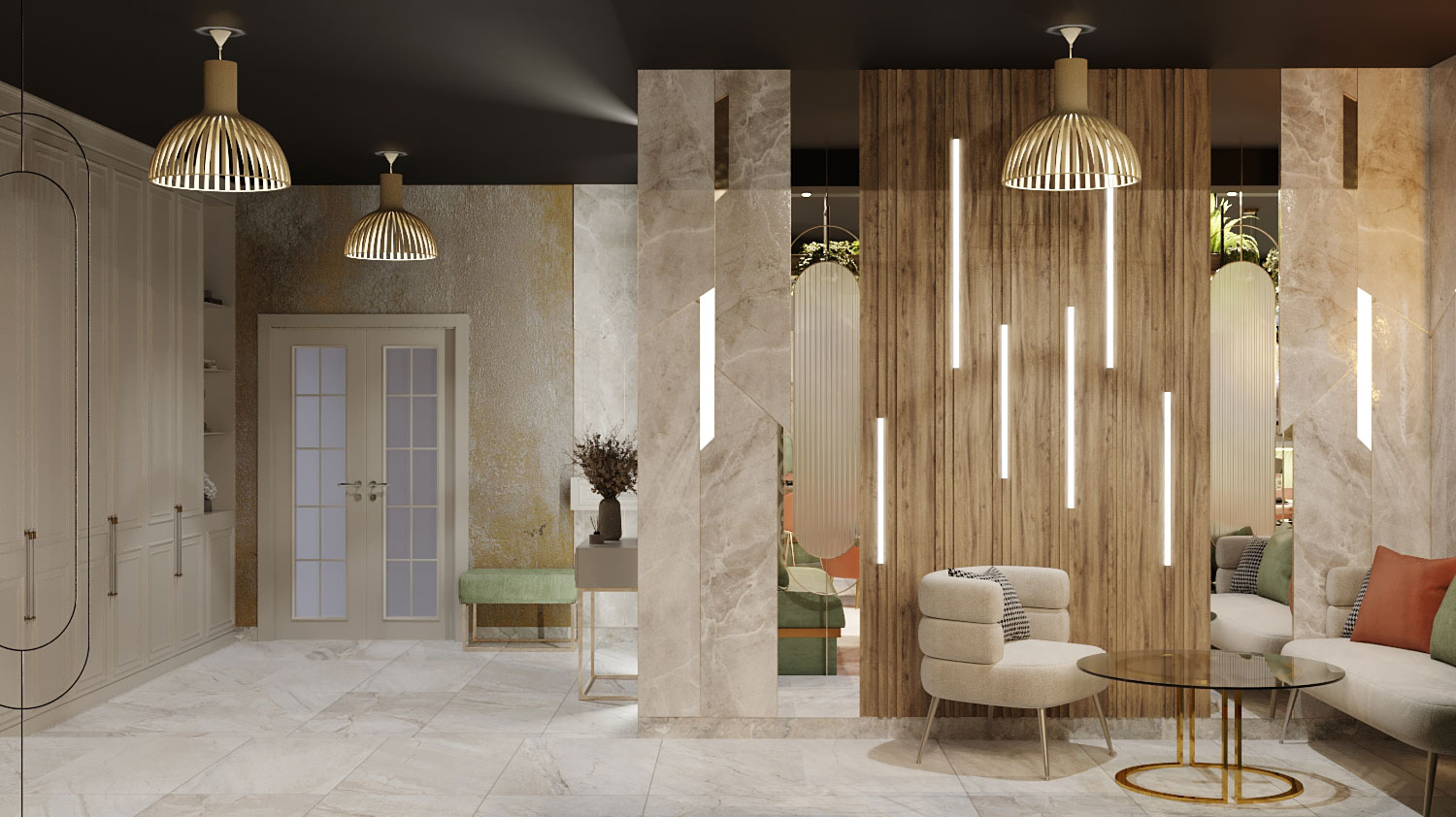 Виды работ: разработка дизайн-проекта, 3-D визуализация, 3D тур по помещениям.